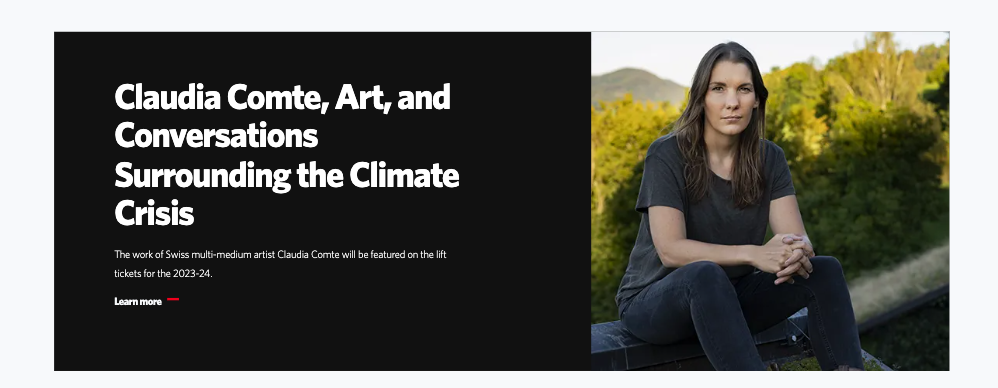 Claudia Comte – For the 2023–2024 season, I interviewed and profiled Swiss multi-disciplinary artist Claudie Comte, whose work explored climate, nature, and playful surrealism. I helped bring her art to life on lift tickets, passes, on-mountain installations, and in storytelling that engaged both guests and the community